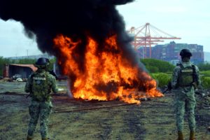 *Las instituciones dieron a conocer el acto de incineración del estupefaciente en instalaciones de la SEMAR ubicadas en Colima