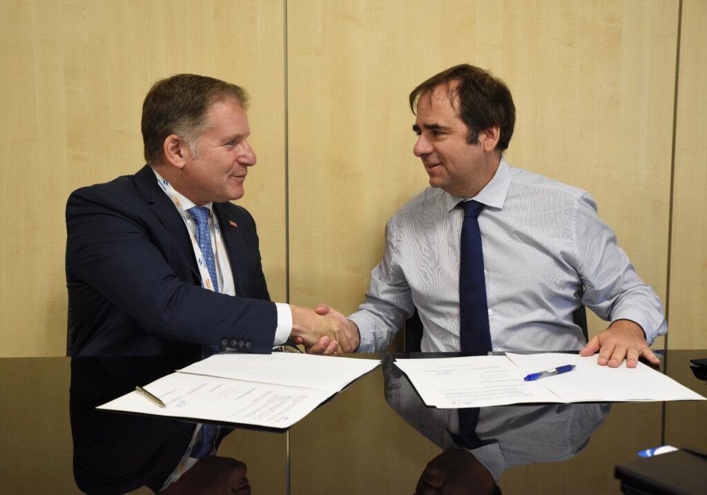 Eric Freeman, CEO de Alpha Unmanned Systems y Juan de la Cueva, Director Comercial y de Desarrollo de Negocio de Navantia.